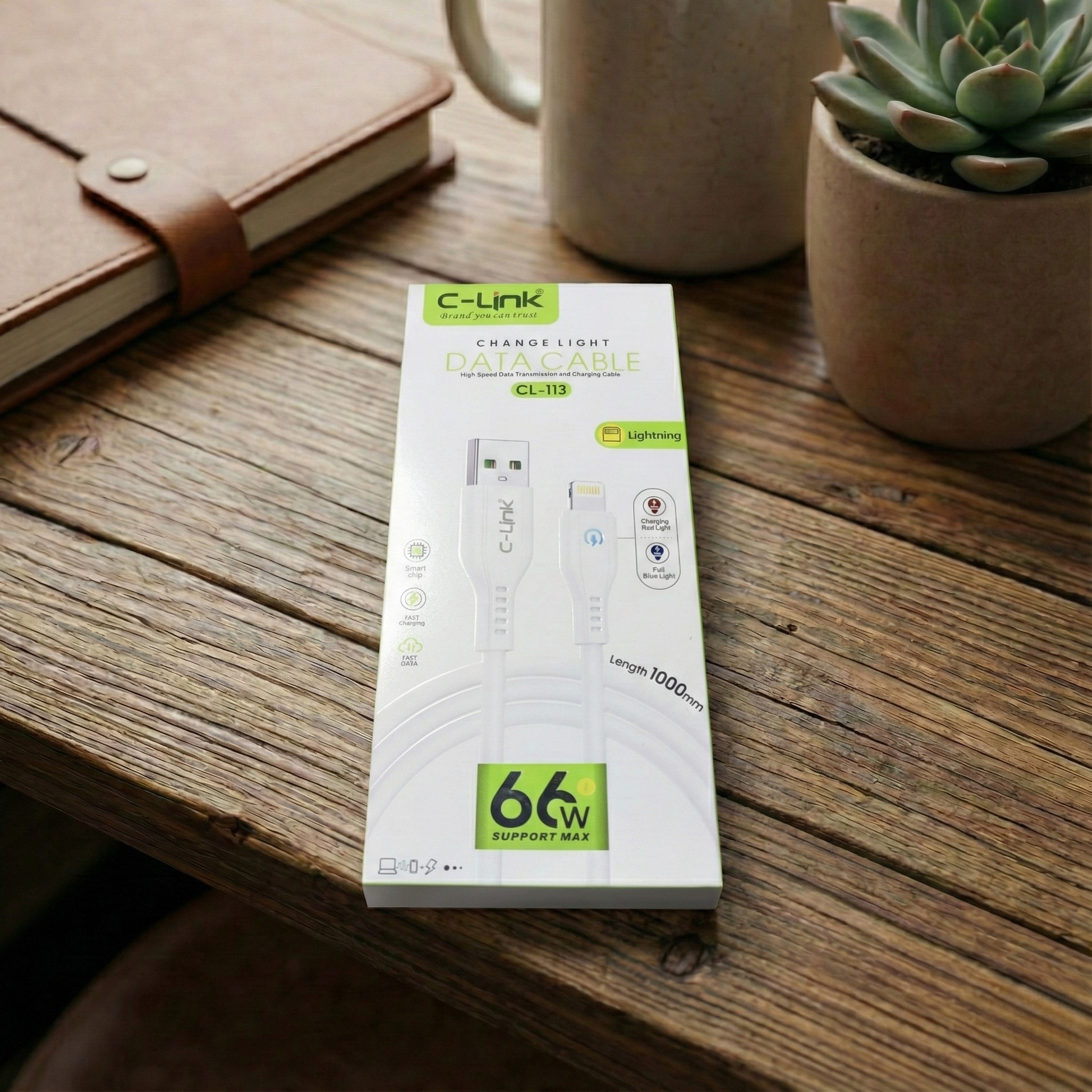 C-Link CL-113 66W Fast iPhone Charging Cable ā Smart Color-Changing LED